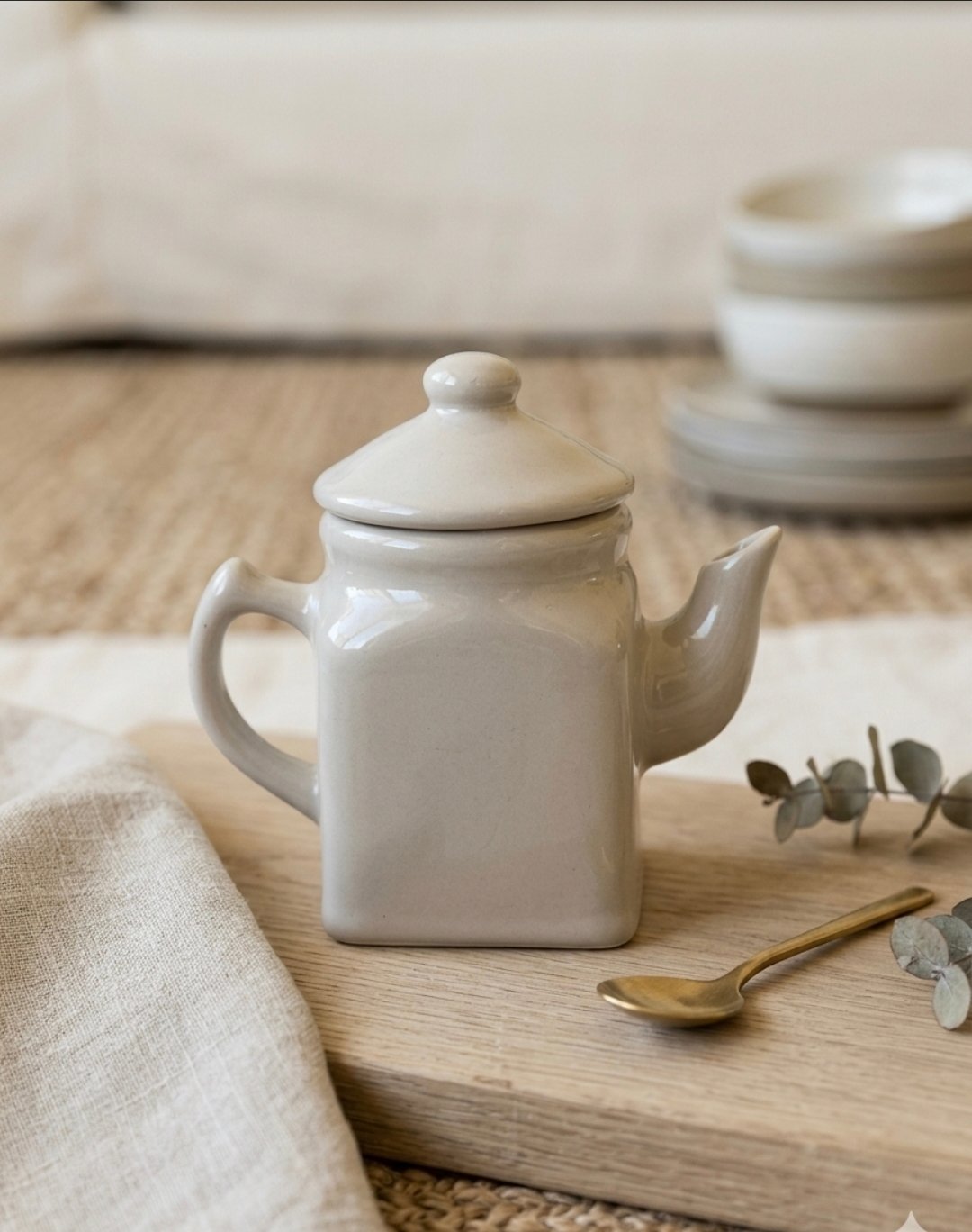 Com linhas suaves, proporção compacta e acabamento em cerâmica de tonalidade neutra, ele traduz o charme do farmhouse europeu em sua forma mais elegante. Uma peça pensada para composições cuidadosas: sobre tábuas de madeira, em bandejas com linho natural ou em prateleiras que contam histórias.