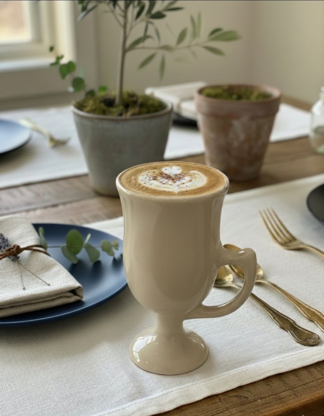 Elegante e acolhedora, essa caneca transforma seu cappuccino em um verdadeiro ritual de conforto. Com design alongado e base delicada, traz charme à mesa — perfeita para momentos que pedem pausa, aconchego e um toque de beleza no dia.